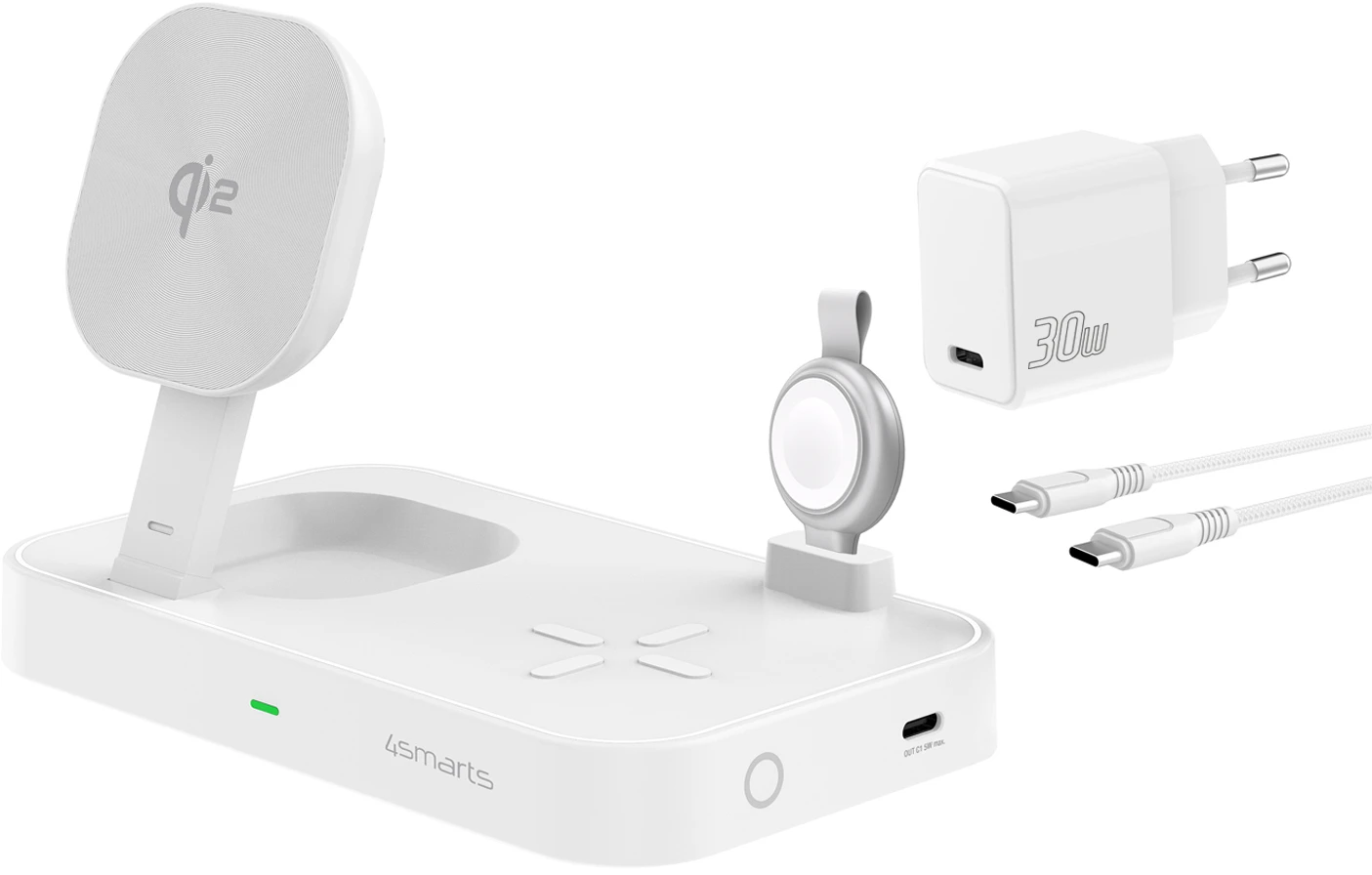 4Smarts Qi2 Ladestation Trident mit Charger für Apple Watch Weiß