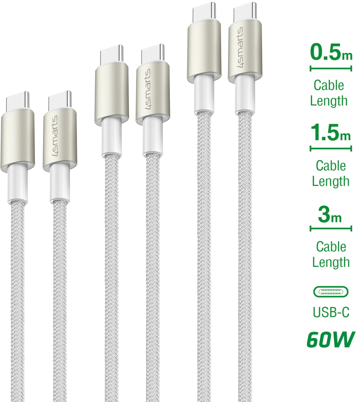 4Smarts USB-C Kabel PrimeCord 60W 1,5m Weiß